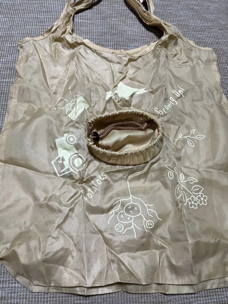 現在も愛用中のエコバッグ。ジャガイモの形になるかわいいやつ❤️使い過ぎてかなりへたってますが、以前にカルビー収穫祭でもらったものだと思います!一緒かな??