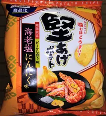 海老塩にんにく美味しいね 海老塩にんにく食べてみました。皆さんの投稿通り、はじめは海老の香りがたまりませんねー🎵にんにくはこれまた投稿通り、強烈ではなく、少し香るかなーという感じでした。とても食べやすく美味しかったです✨気のせいか、他の堅あげより、堅さが軽めに感じたのは私だけでしょうか?(にんにくで焦げやすいために、揚げ方が