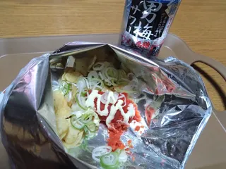 贅沢食べ✨️ GW、毎晩旦那に便乗して一緒に暴飲暴食😆今晩で終わりにします!😂 最後は、贅沢食べ✨️堅あげ【うすしお味】+明太子+ネギ+マヨネーズ美味しすぎます😍 堅あげに!いつもありがとう❣️