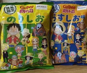 ONE PIECE コラボパッケージ⭐️ セブン限定コラボ商品。あまりのかわいさパッケージに(全4種デザイン、表裏も)全部買い。下にあったはっさく味のを買うつもりが上に手が…早速食して、塩味(えんみ)とチップスのカリッとサクッと感、いつもよりおいしく感じました。かなり新鮮感がありました。堅あげもたまにはこんなコラボパッケージ欲しいなぁ(╹◡