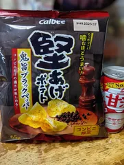 雪で心配しましたが最愛の息子が 仕事から帰ってきました🥰 その時点でやっと私のチートディが 始まりました✨️ 今晩は【ゆず塩レモン🍋】を食べた後 ピザポテトの明太マヨが美味しそうで それをマネしたくて… めずらしく「堅あげうすしお」に 明太子+マヨネーズ+きざみネギを のせて今、美味しくいただいて