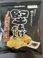 ブラックペッパー堅あげ いつも堅あげポテトはBigを食べていますが、今日はブラックペッパーを買ってみました。ブラックペッパーの香りが広がって美味しかったわ。